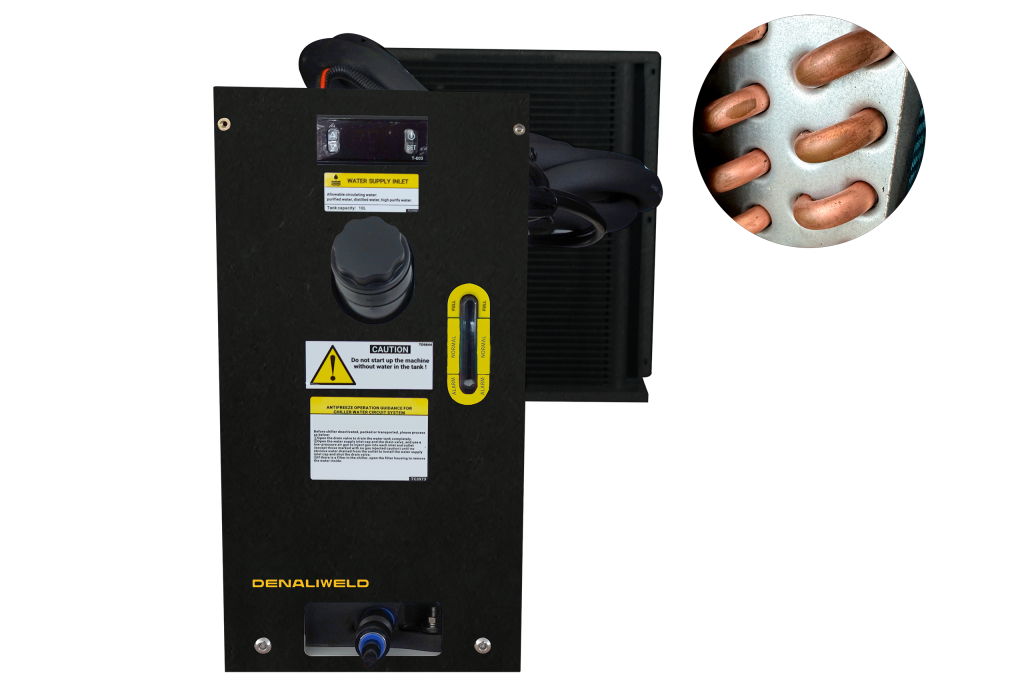 At DenaliWeld, we use an advanced Copper + Aluminum heat exchanging system to provide superior cooling performance. Unlike the micro-tube exchangers commonly found in 99% of coolers on the market, our system delivers much more reliable and efficient cooling, ensuring consistent and optimal temperatures for your laser equipment. This results in longer operational life, enhanced performance, and increased overall efficiency.